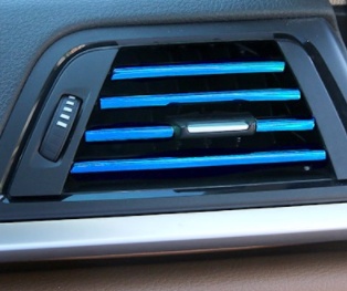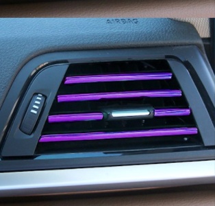 Name: automobile air outlet light strip decorationSize: 0.8cm x 20cm.Material: PVC.Package: 1 set (10 pieces).Scope of application: automobile air outletApplicable model: general model