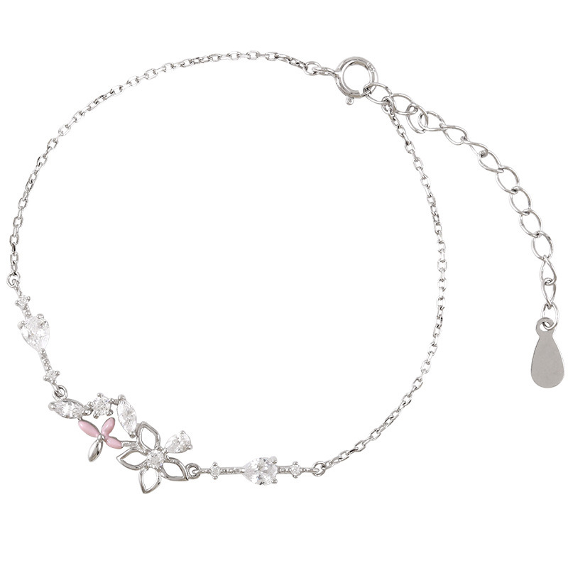 925 Sterling Silver Link Chain Crystal Flower Charm Bracelet & Bangle For Women Wedding Jewelry SL113