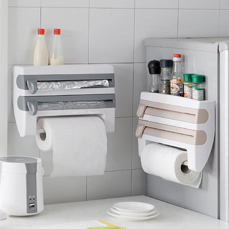 Paper Towel Holder Sauce Bottle Rack Kitchen Organizer 4 In 1 Cling Film Cutting Holder