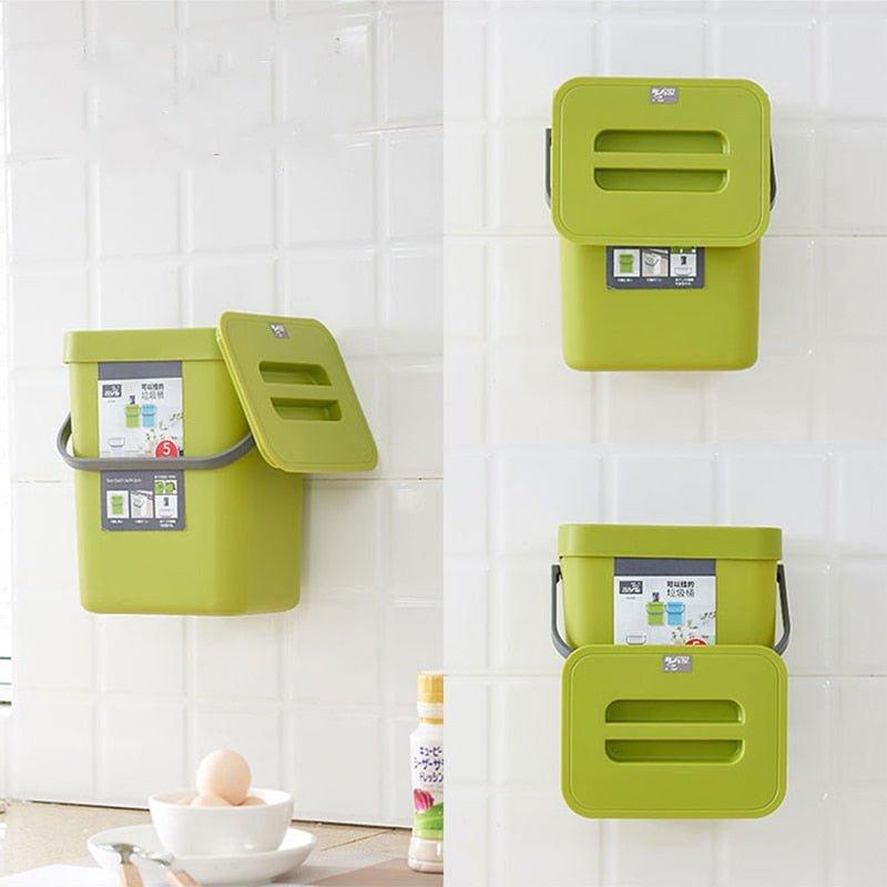 Equipped with self-adhesive paper and wide hooks. If you stick to the wall, you only need to use self-adhesive paper to stick to the back of the trash can and then stick to the wall. If you need to hang on the door, you need to stick the wide hook to the sticker It can be hung on the door.
