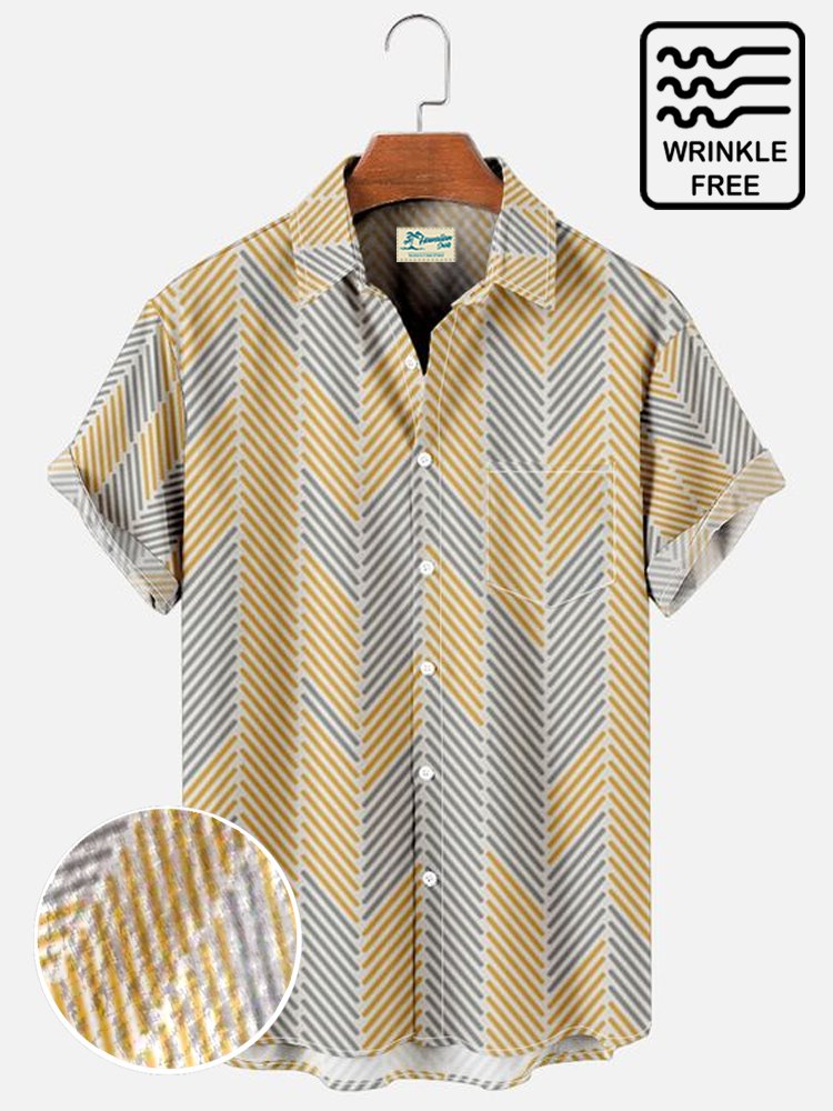 Men's Casual Striped Hawaiian Short Sleeve Seersucker Wrinkle Free Shirt