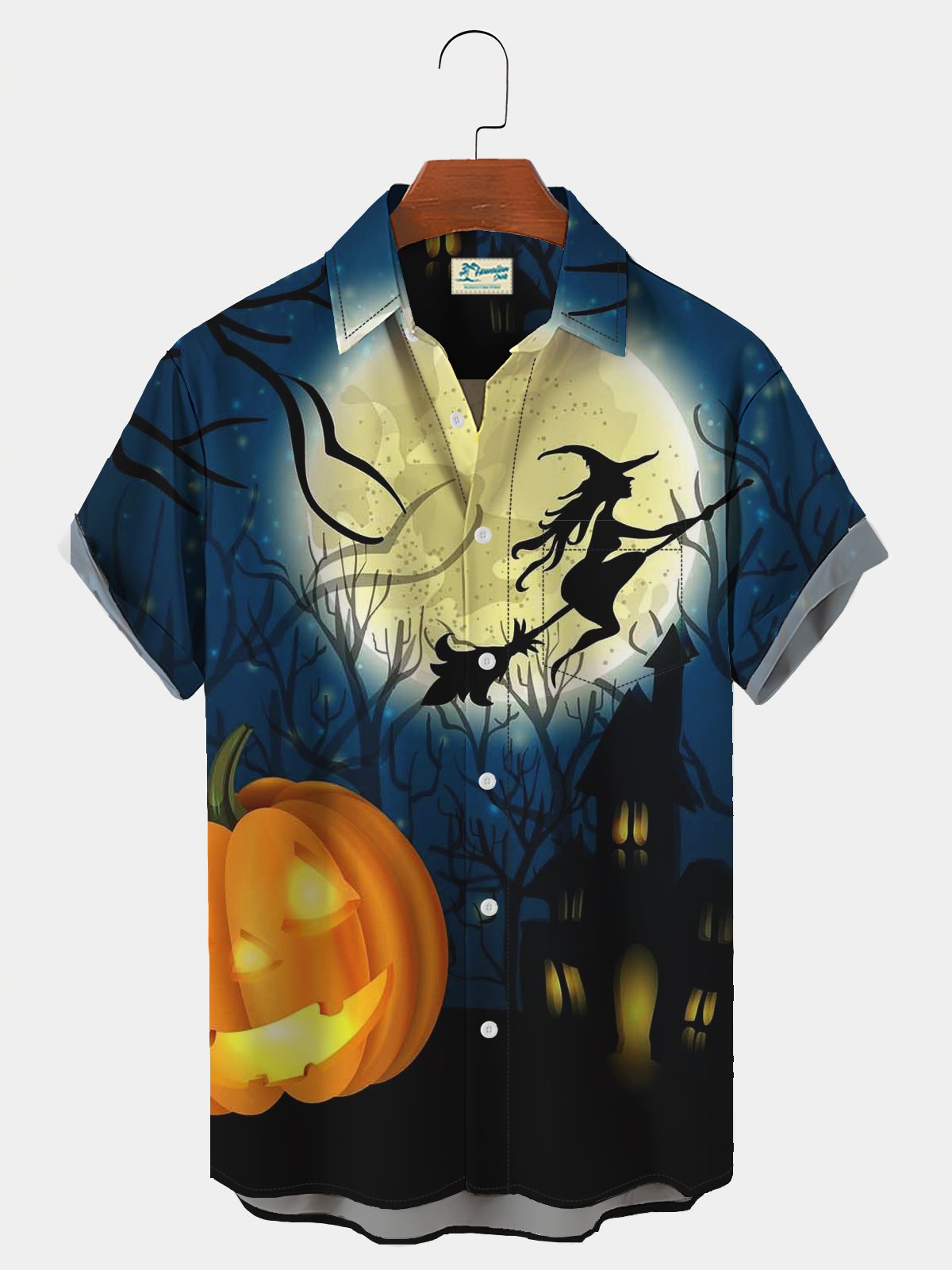 Men's Vintage Halloween Button-Up Shirt Hawaiian Short Sleeve Breathable Shirt