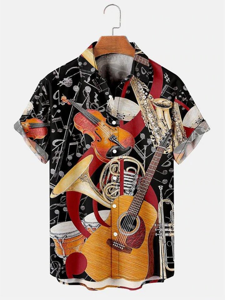 Men's Vintage Casual Musical Instrument Stitching Hawaiian shirt