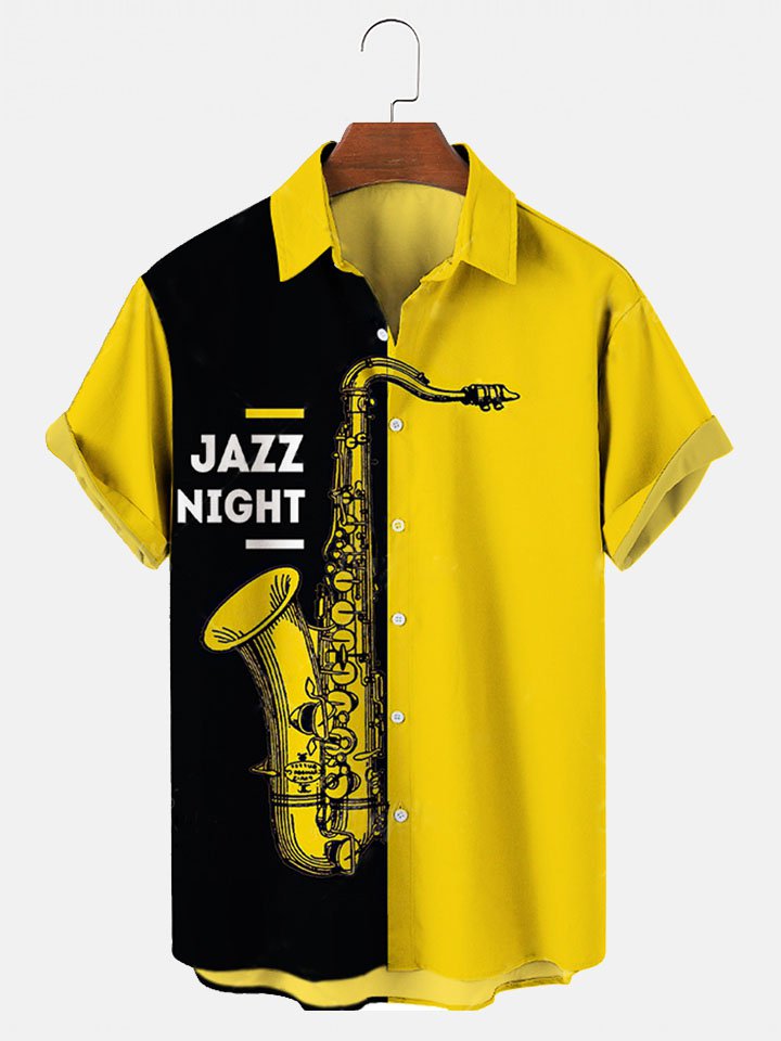 Men's Fashion Music Guitar Loose Casual Hawaiian Short Sleeve Shirt