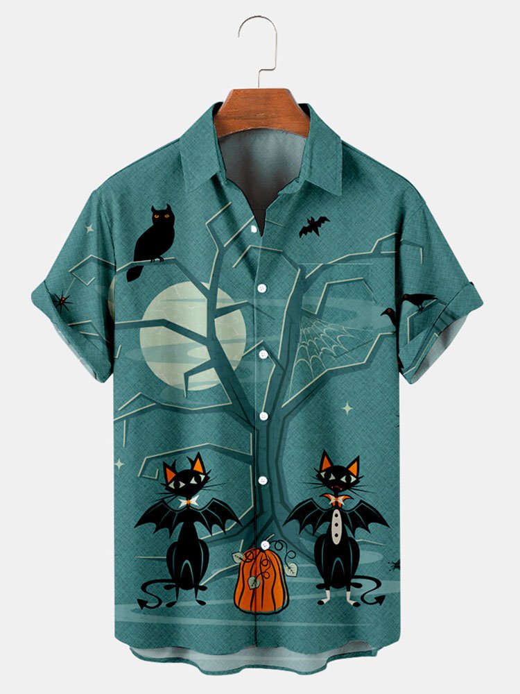 Cat Halloween Graphic Print Short Sleeve Shirt