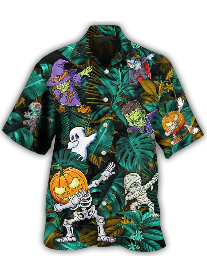 Halloween Dabbing Skeleton Zombie Style Print Hawaiian Shirt