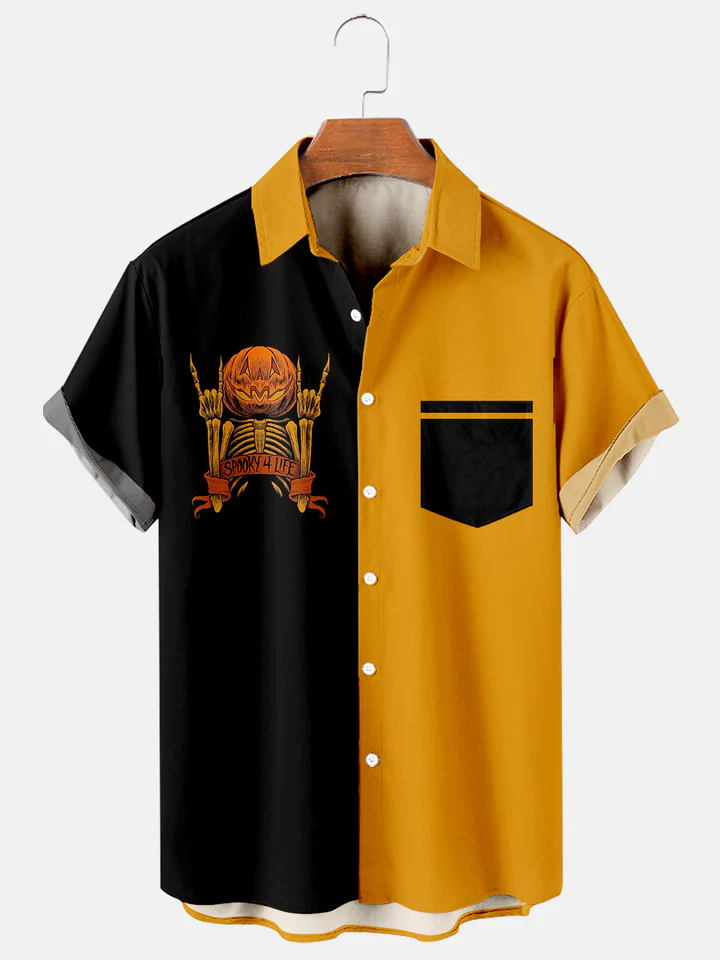 Halloween Pumpkin Skull Print Contrast Print Hawaiian Vacation Shirt