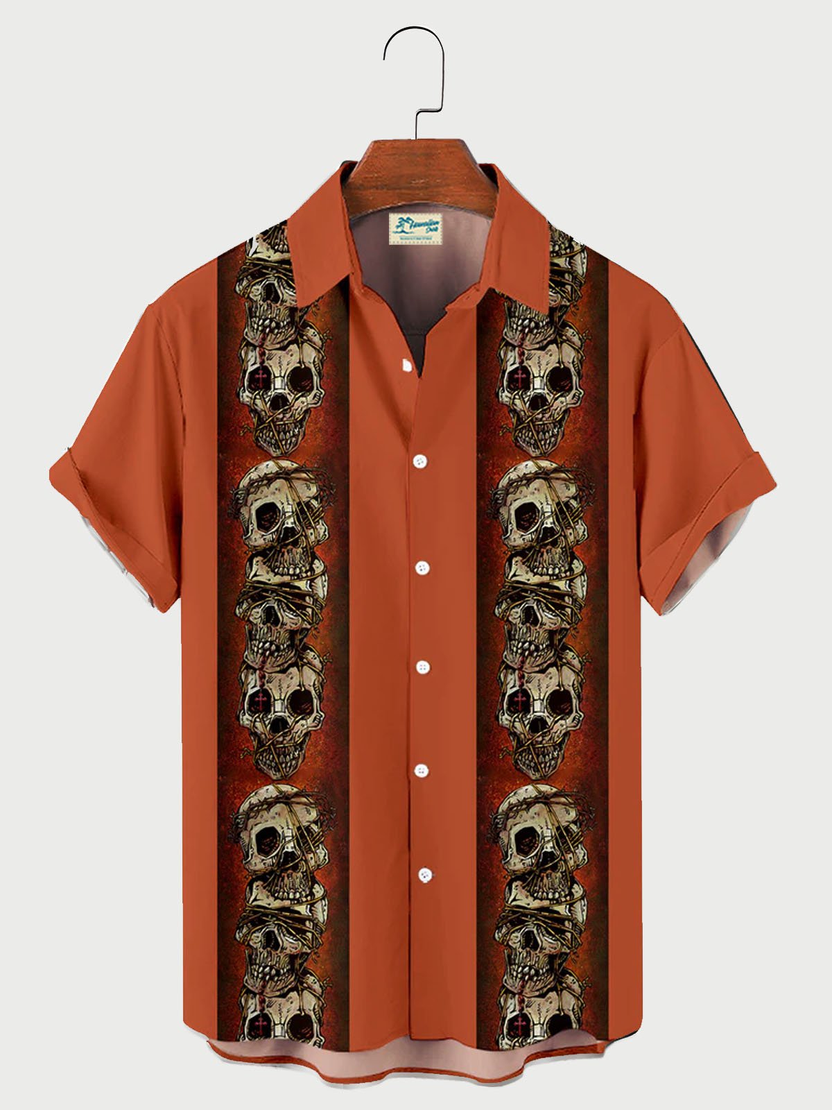 Halloween Skull Contrast Print Short Sleeve Bowling Shirt