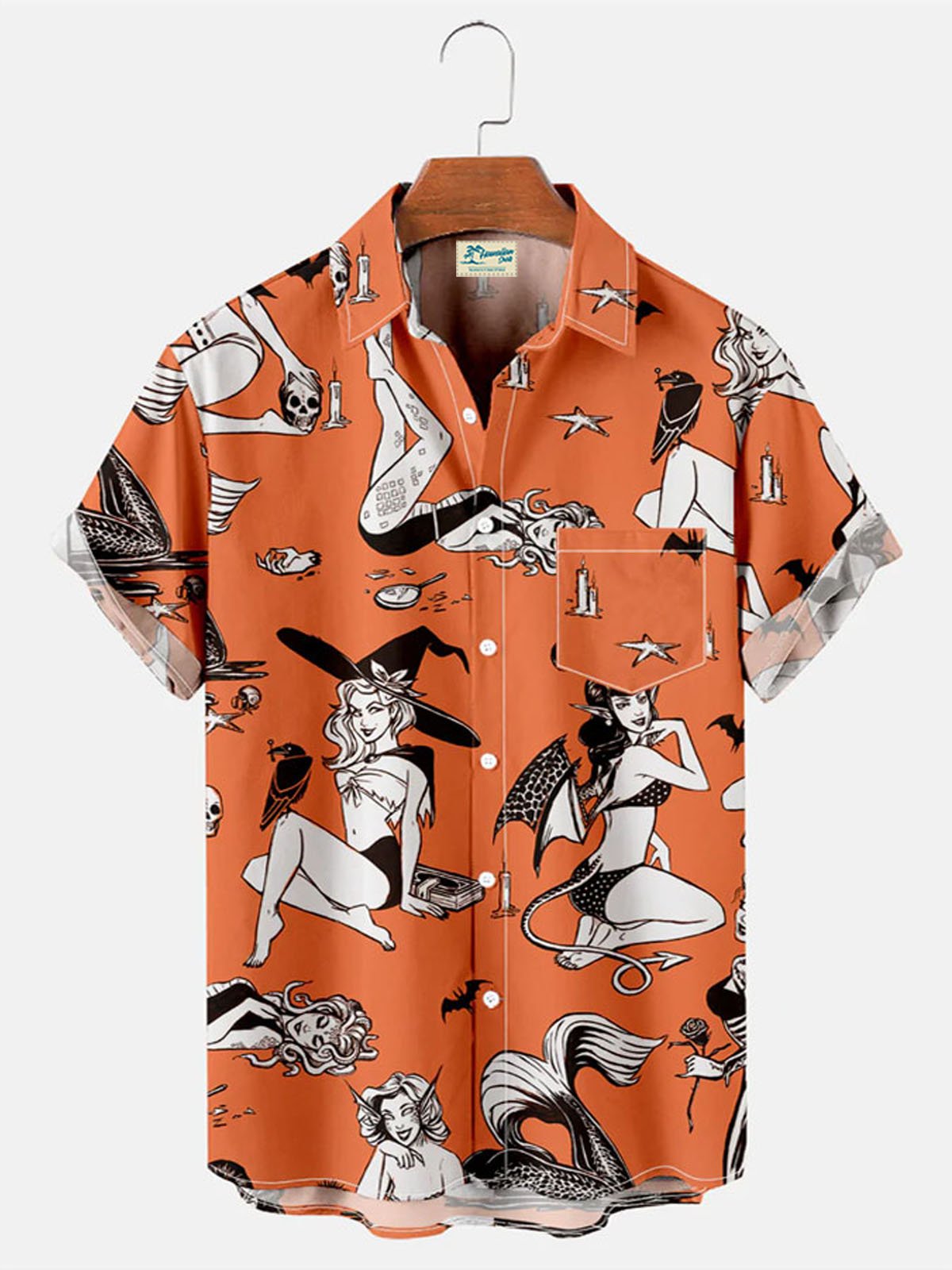 Halloween Witch Print Short Sleeve Hawaiian Shirt