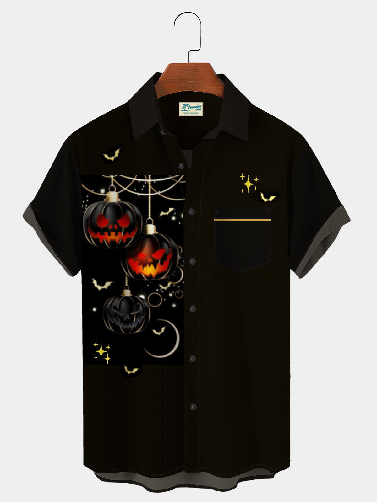 Men's Halloween Black Shirts Fashion Pumpkin Bat Vampire Noble Plus Size Tops