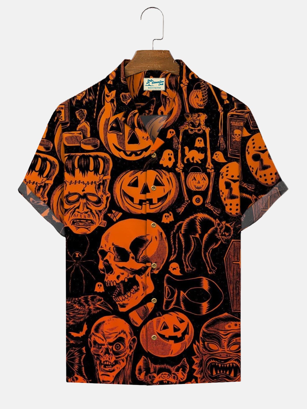Men's Halloween Shirts Black Cat Pumpkin Ghost Skull Cartoon Wrinkle Free Plus Size Tops