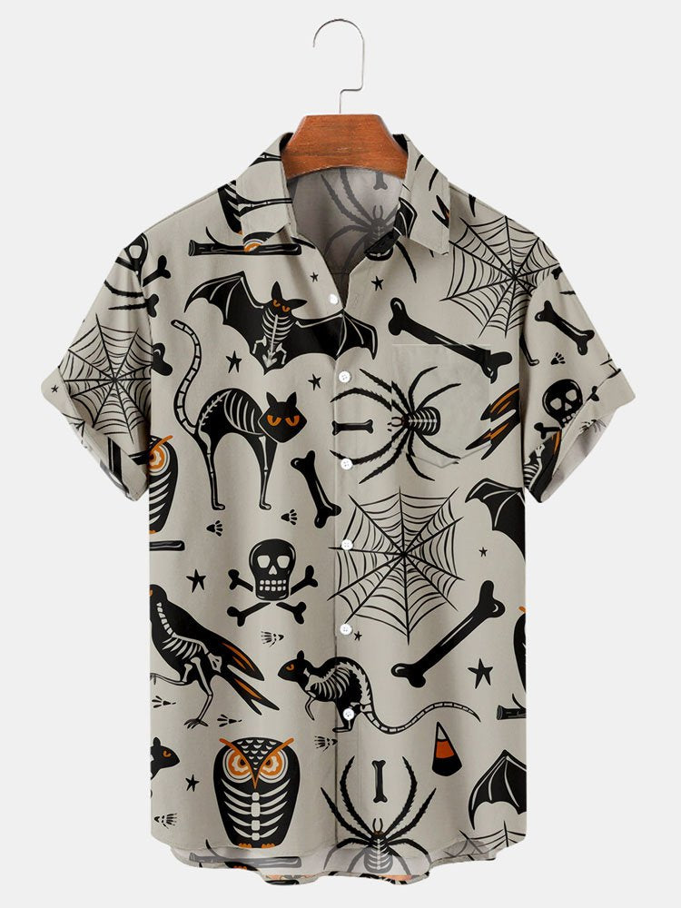 Mens Orange Spider Cotton-Blend Holiday Series Short Sleeve Halloween Shirts