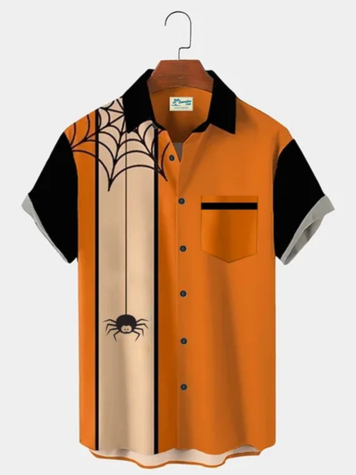 Men's Retro Halloween Print Casual Short Sleeve Shirt