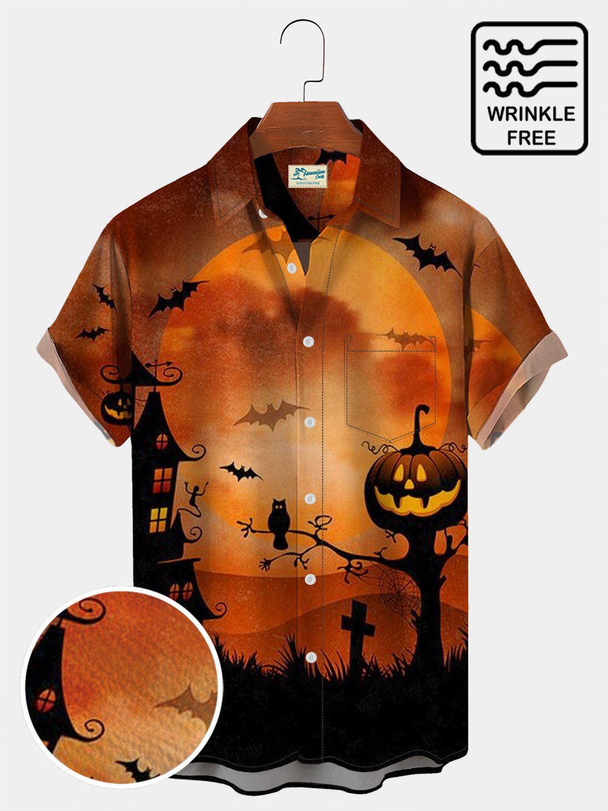 Vintage Halloween Shirts Pumpkin Witch Gradient Art Kasbah Wrinkle Free Hawaiian Shirts
