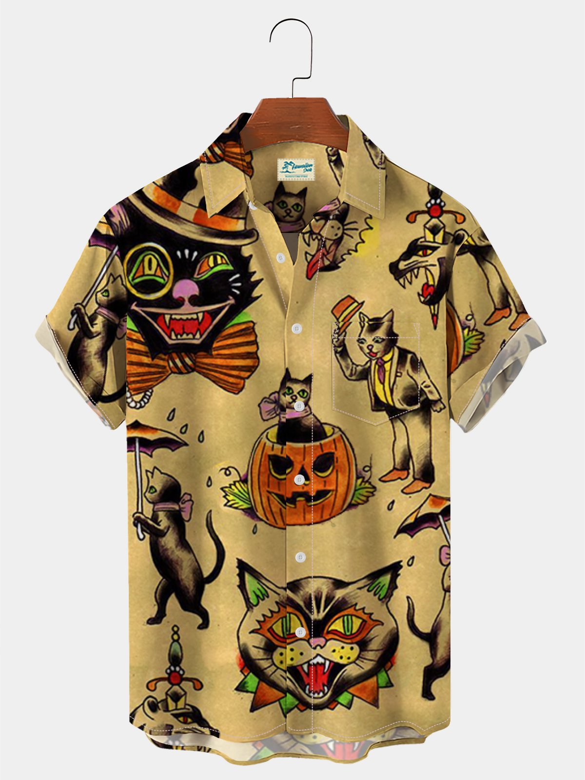 Men's Casual Print Shirts Halloween Pumpkin Fun Plus Size Wrinkle Free Tops