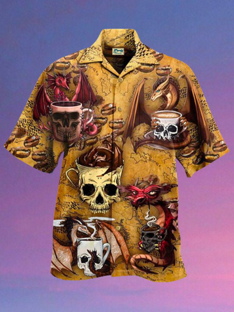 Men's Coffee and Skull Halloween Hawaiian Short Sleeve Shirt