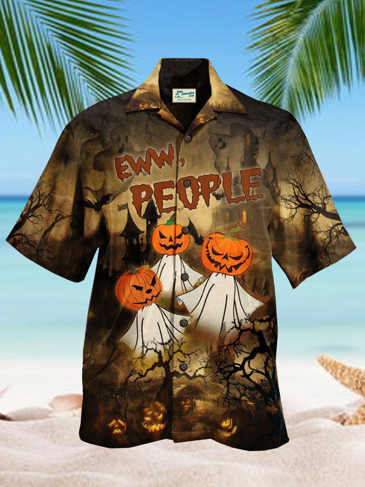 Men's Halloween Eww People Pumpkin Ghost Hawaiian Shirt Unique Tee
