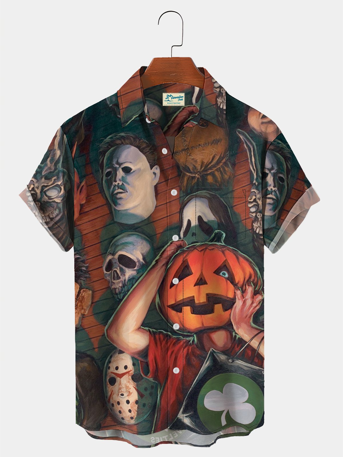 Men's Halloween michael myers shirt Hawaiian Short Sleeve Breathable Shirt