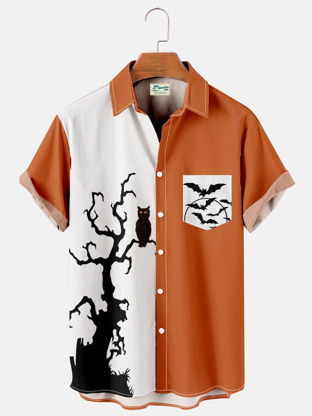 Men's Spoof Owl Bat Halloween Series Short Sleeve Bowling Shirt