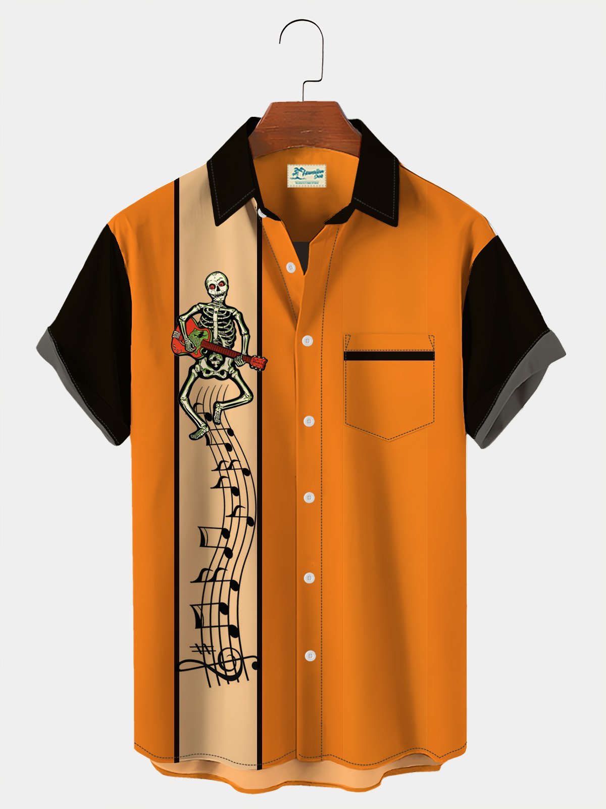 Men's Vintage Halloween Shirts Musical Skull Fun Art Wrinkle Free Tops