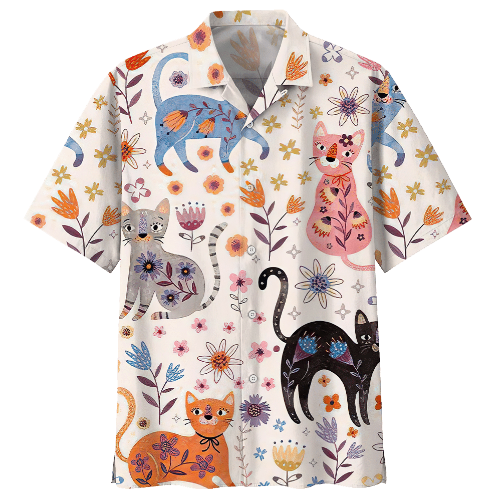 Flower Cat Aloha Hawaiian Shirt Summer Beach Shirt Unisex