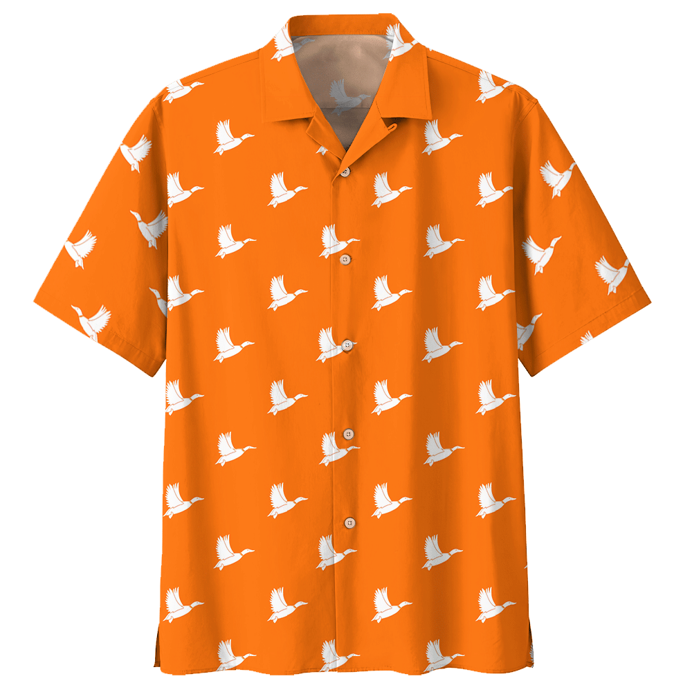 Orange Duck Mallard Pattern Aloha Hawaiian Shirt Summer Beach Shirt Unisex