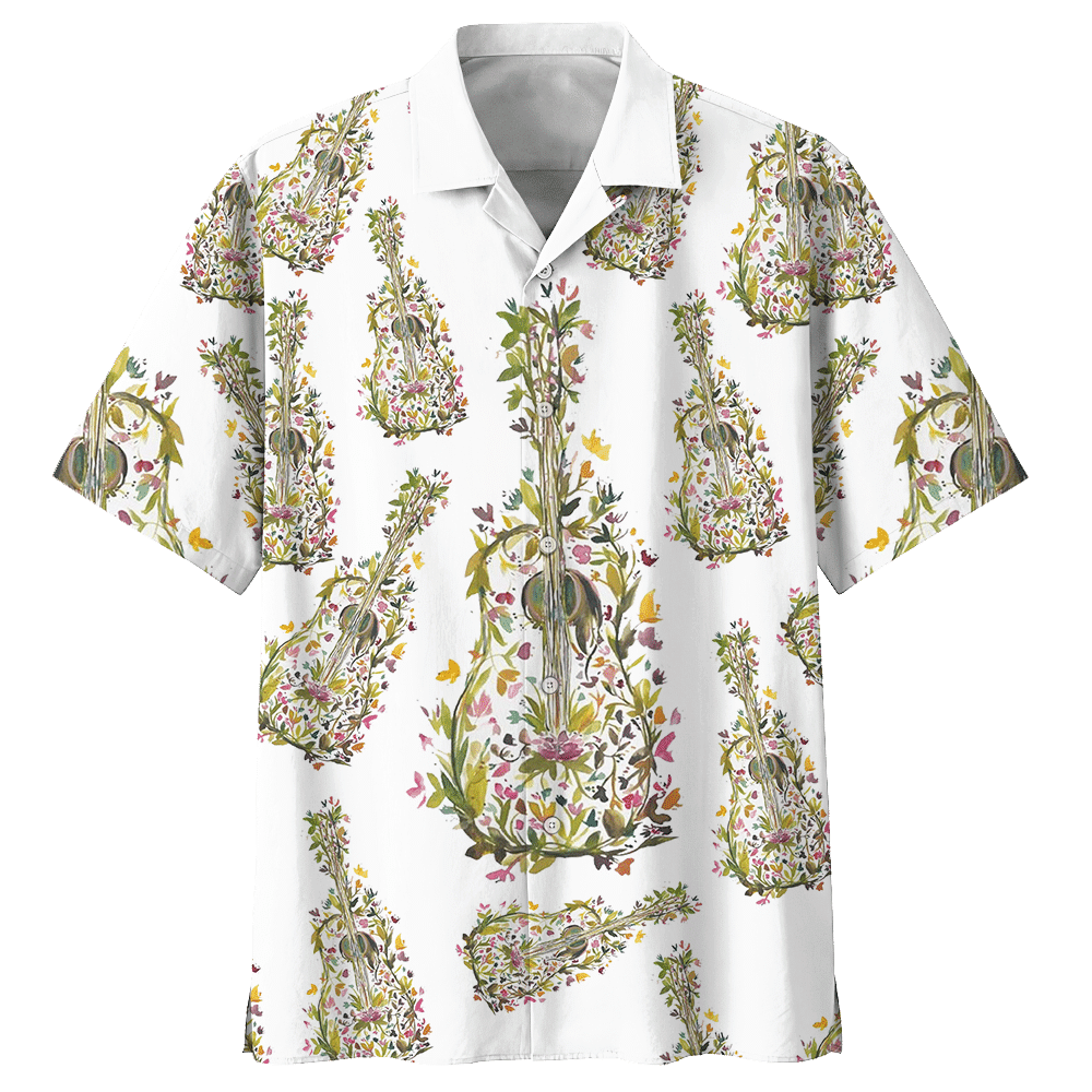 Guitar Flowers Hawaiian Short Aloha Hawaiian Shirt Summer Beach Shirt Unisex