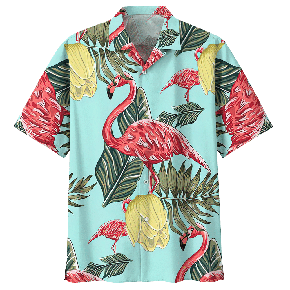 Greater Flamingo Leaves Aloha Hawaiian Shirt Summer Beach Shirt Unisex