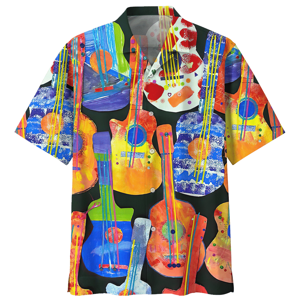 Colorful Painting Guitar Aloha Hawaiian Shirt Summer Beach Shirt Unisex