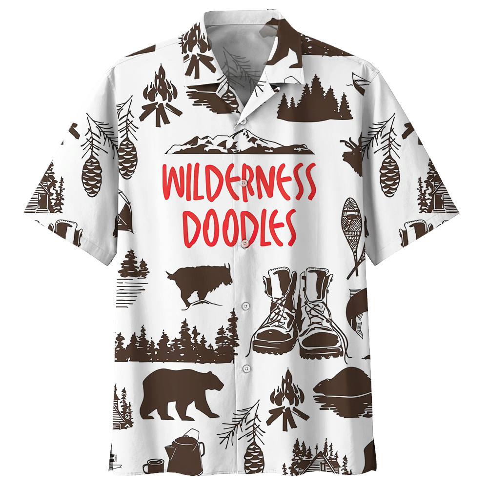 Wilderness Doodles Camping Aloha Hawaiian Shirt Summer Beach Shirt Unisex