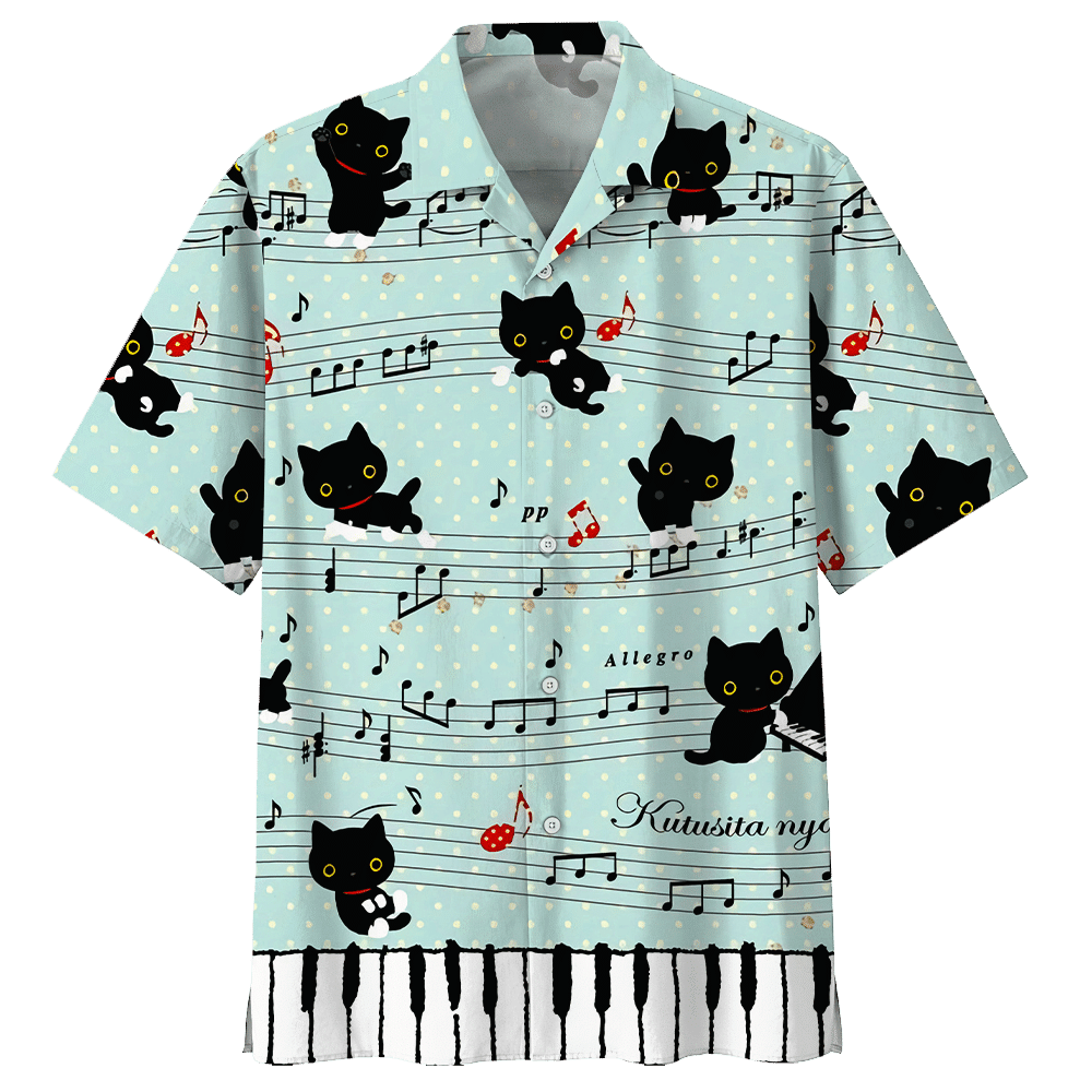 Music Black Cat Aloha Hawaiian Shirt Summer Beach Shirt Unisex